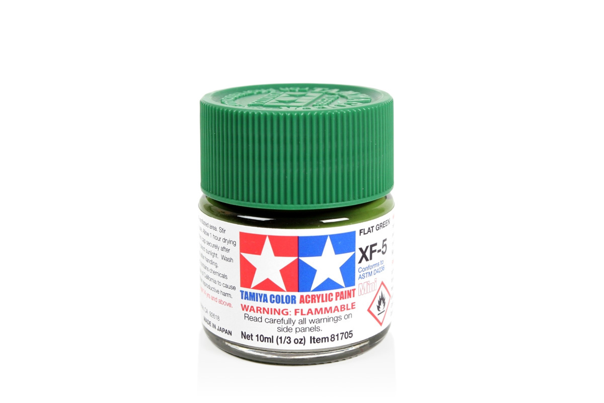 Tamiya Acrylic Paints are made from water-soluble acrylic resins and are excellent for either brush or spray-painting. These paints can be used on styrene resins, styrofoam, wood, plus all the common model plastics. The paint covers well, flows smoothly with no blushing or fading, and can be blended easily. It can be washed off of brushes easily using water before it dries.