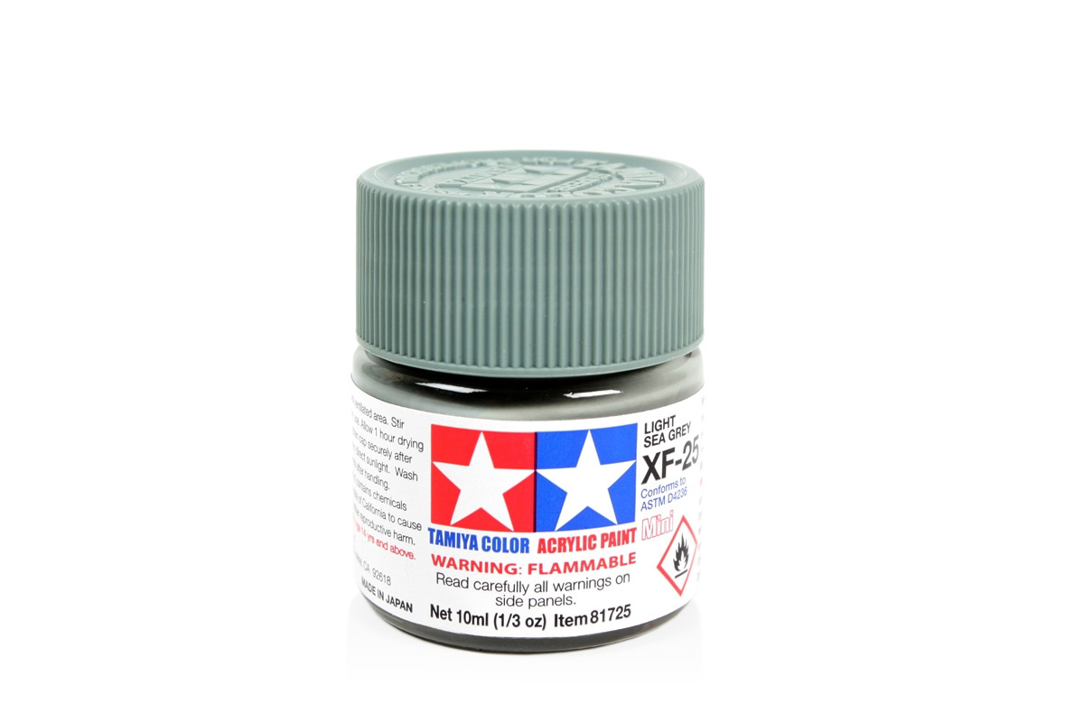 Tamiya Acrylic Paints are made from water-soluble acrylic resins and are excellent for either brush or spray-painting. These paints can be used on styrene resins, styrofoam, wood, plus all the common model plastics. The paint covers well, flows smoothly with no blushing or fading, and can be blended