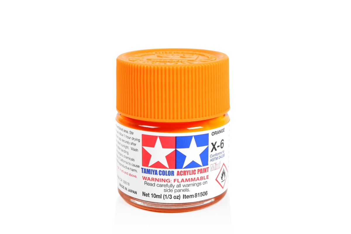 Tamiya Acrylic Paints are made from water-soluble acrylic resins and are excellent for either brush or spray-painting. These paints can be used on styrene resins, styrofoam, wood, plus all the common model plastics. The paint covers well, flows smoothly with no blushing or fading, and can be blended easily. It can be washed off of brushes easily using water before it dries.