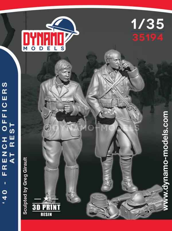 The 1/35 1940 French Officers at Rest Set by Dynamo Models includes two detailed 3D printed resin figures — an officer and a sergeant — ideal for Battle of France dioramas and collectors.